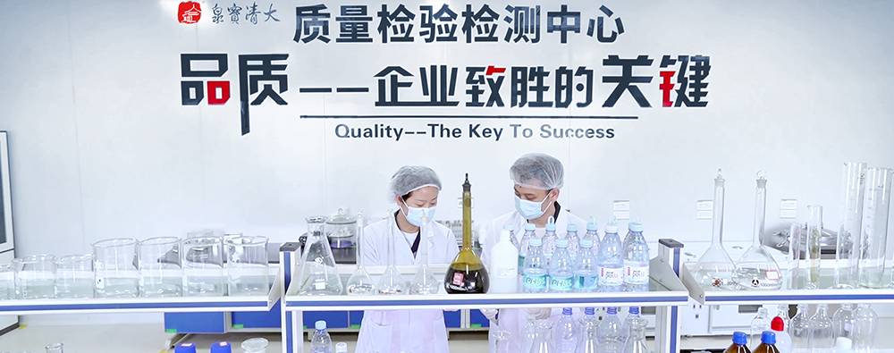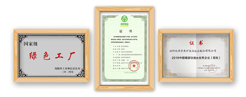 通过ISO 9001、ISO 14001、ISO 22000、ISO 45001、ISO 50001严格生产管理 大清宝泉国家级绿色工厂拥有世界领先的水处理设备和生产线,拥有国际一流的生产工艺和管理体系。 荣获5项国际体系认证,以科学的管理,严把生产质量关。